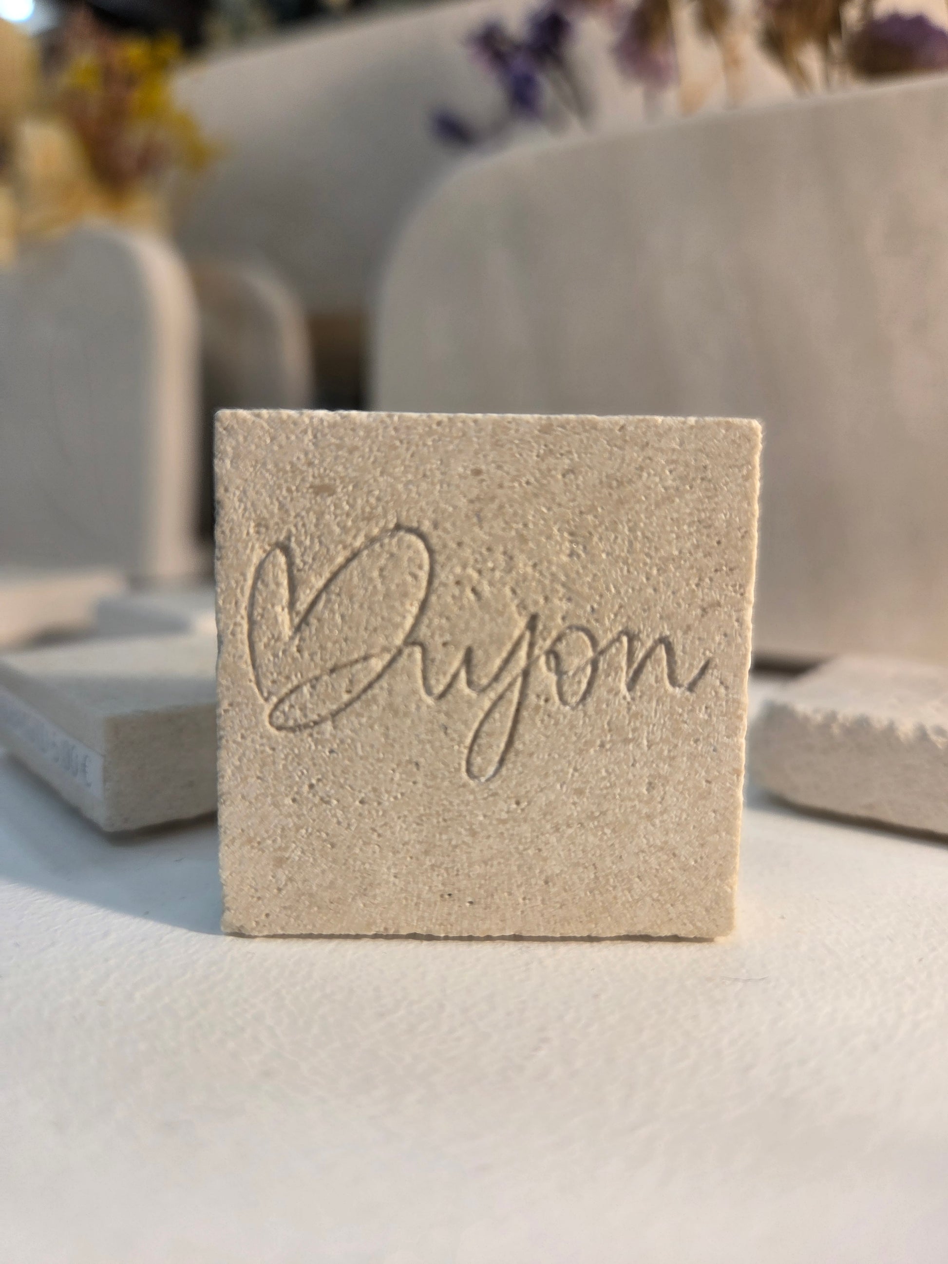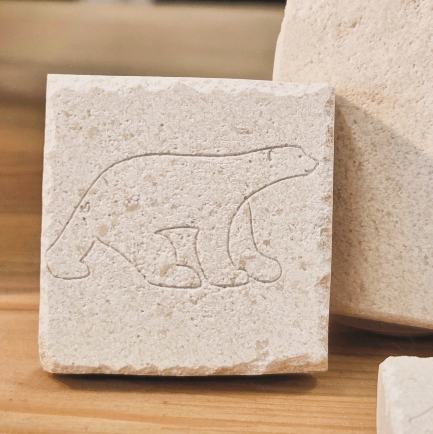 Ce magnet en pierre de Bourgogne est orné d’une gravure délicate représentant soit un ours pompon, soit une chouette, deux emblèmes historiques et culturels de la ville de Dijon.