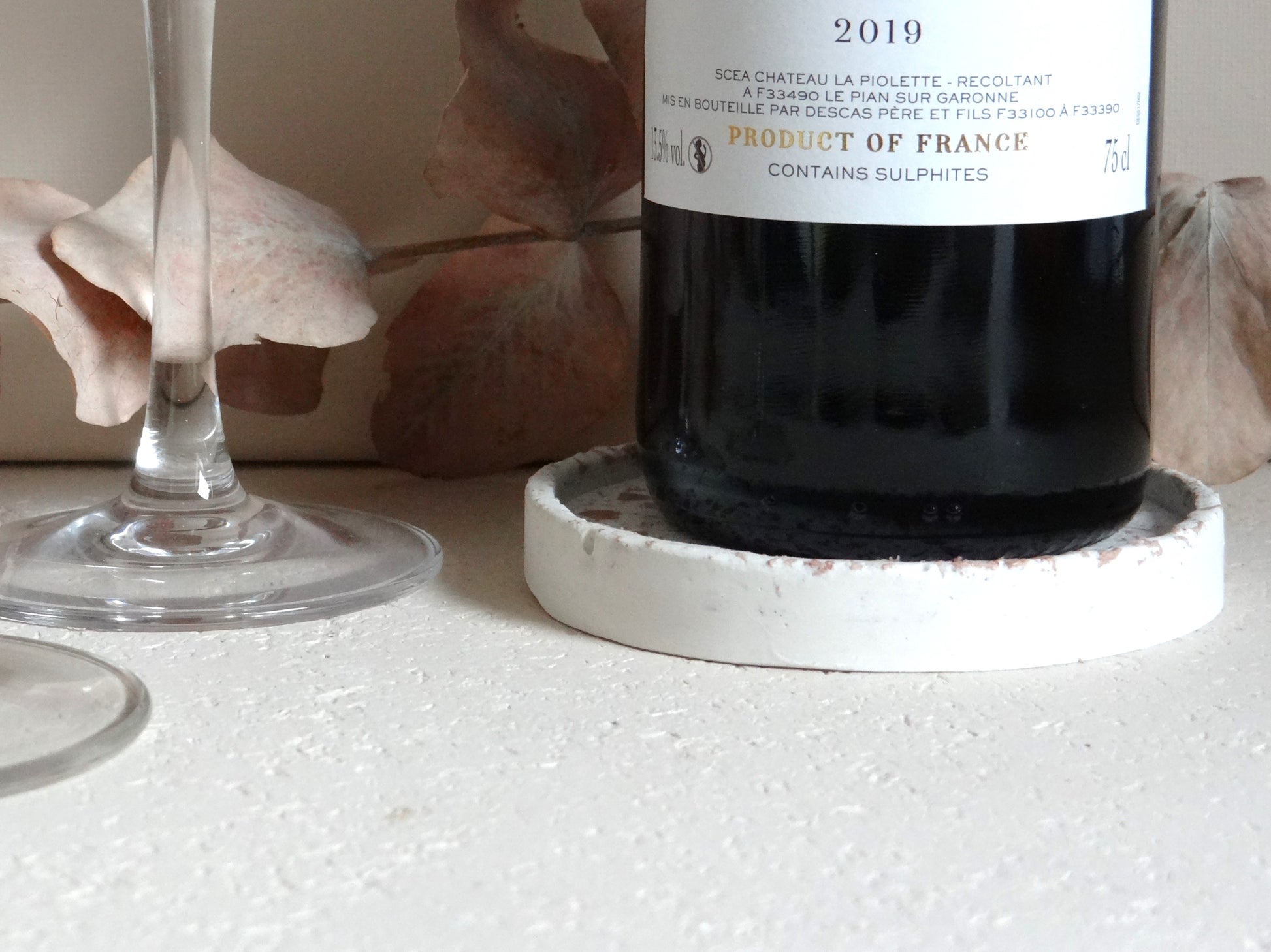 Ce dessous de bouteille allie élégance et robustesse grâce à sa fabrication artisanale en Bourgogne.